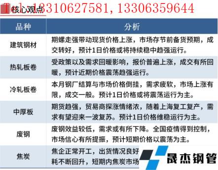 黑色期市偏强运行,贸易商报价上扬。从成交方面来看,由于期螺涨幅较多,市场刚需有所释放,部分投机性需求增加。短期来看,近期全国多地一揽子稳经济政策积极出台,稳定市场情绪,在政策加持下,现货价格有所反弹。加之,上海6月1日起全面恢复正常生产生活秩序,预示着需求将逐步回暖。随着市场信心的逐步建立,短期钢价呈现震荡偏强运行。