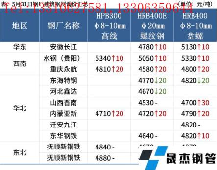 进口矿:5月31日,唐山地区进口矿市场偏强运行,市场成交一般。全天进口矿现货市场价格整体较上一工作日上涨5-15元/吨,截止目前,唐山地区市场成交有PB粉上午980元/吨,下午975、976和978元/吨,纽曼块1250元/吨,金布巴粉890元/吨,混合粉860元/吨。