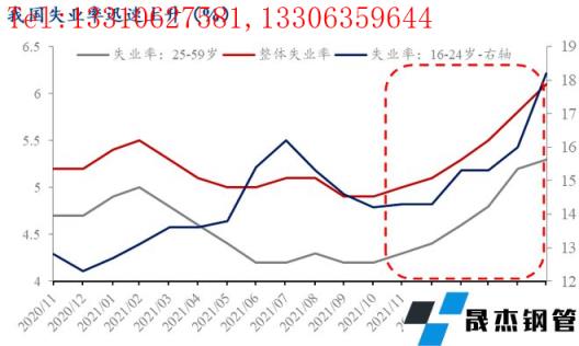 目前我国居民就业情况十分严峻,截至2022年4月,我国居民失业率高达6.1%,16-24岁居民失业率高达18.2%,25-59岁居民失业率录得5.3%,三者较其低点(2020年12月)分别上升,0.9、5.9、0.6个百分点。