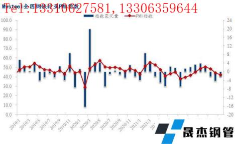 2022年5月份全国钢铁行业PMI为42.0%,环比回落2.3个百分点,连续三个月低于荣枯线。分指标来看,本月新订单、新出口订单、积压订单、出厂价格、原料采购价指数均大幅回落,仅产出、原材料库存指数小幅回升,但仍处于荣枯线下方,显示了5月份国内钢铁行业呈现供需两弱的低迷态势运行。具体来看,5月份国内疫情仍呈多点散发态势,继续拖累终端需求释放,同时宏观经济数据显示投资消费信心不足、国内经济面临较大下行压力,导致市场悲观情绪蔓延,国内厚壁无缝钢管价格持续下行,无缝厚壁钢管厂家生产盈利快速收窄,尤其是短流程无缝厚壁钢管厂家面临全线亏损,无缝厚壁钢管厂家供给释放受到抑制。面对即将到来的6月份,国内钢价能否止跌企稳,下面笔者从PMI各项指数进行分析解读。