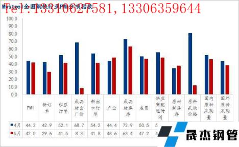 5月份,全国钢铁行业新订单指数29.6,月环比下降13.3个百分点,再次处于荣枯线之下。