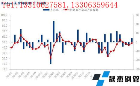5月份,全国钢铁行业无缝厚壁钢管厂家产出指数较4月份小幅回升4.2个百分点,终值48.6。具体来看,上半月随着部分区域高炉检修结束陆续复产,粗钢产量整体回升,但后半月成材价格持续下行,导致无缝厚壁钢管厂家生产盈利大幅收缩,尤其是短流程企业已全线亏损,部分无缝厚壁钢管厂家主动停减产,成材产量随之下行。