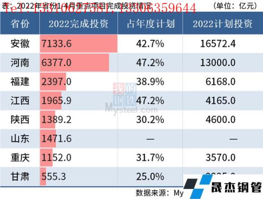据不完全统计,截至5月31日,共有8个省份公布其2022年1-4月重点项目完成投资情况,合计完成投资2.24万亿元,其中安徽省1-4月完成投资7134亿元,占年度计划的42.7%,位居第一。