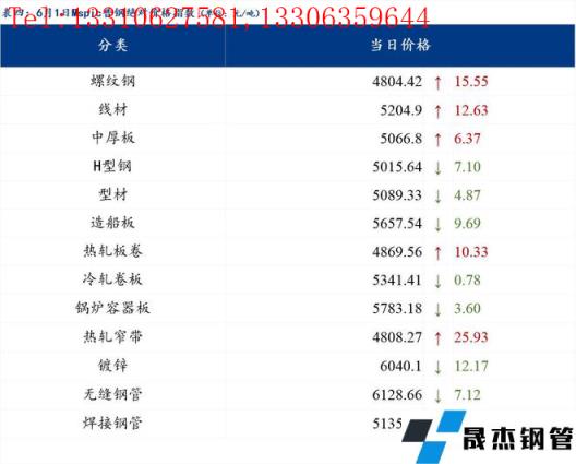 6月1日普钢绝对价格指数变化:综合指数5051.85,上涨9.41;螺纹钢指数4804.42,上涨15.55;线材指数5204.9,上涨12.63;热轧板卷指数4869.56,上涨10.33;冷轧板卷指数5341.41,下跌0.78;中厚板指数5066.8,上涨6.37。