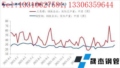 5月随着原料价格继续趋弱运行,无缝厚壁钢管厂家整体开工和产能利用率呈现增长趋势,不过鉴于当前市场形势环境,钢企在近期也陆续下调出厂售价,因此利润方面扩张并不明显。如图,5月全国型无缝厚壁钢管厂家产量迎来上升,尤其是工角槽无缝厚壁钢管厂家周产量大幅攀升,突破近一年峰值。最近调研数据显示,全国工角槽开工率为36.9%,产能利用率为30.63%;全国H型钢开工率为67.74%,产能利用率为54.15%。