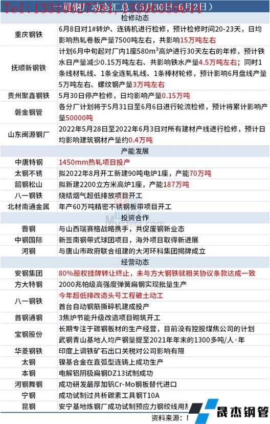 据不完全统计,本周(5月30日-6月2日)有5家无缝厚壁钢管厂家发布检修计划,具体如下: