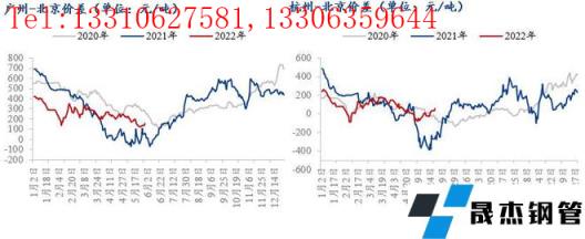 5月份全国各地市场价格不同程度下跌,华南跌幅居前,目前广州-北京价差较上月有所收窄,仅在140元/吨左右,此价差处于偏低水平,不仅低于2020年同期水平,且低于两地之间的运费,因此无缝厚壁钢管厂家资源南下不如在京津冀当地消化,且华南区域的盘螺品种售价还低于华北,因此京津冀的无缝厚壁钢管厂家除承钢、乐钢为维护客户渠道分别有3万吨的南下计划,其他无缝厚壁钢管厂家均无资源南下计划。目前杭州-北京两地之间价差较上月环比有所提高,不过两地之间价差不足100元/吨,尚不足以吸引华北区域无缝厚壁钢管厂家资源发往华东。当前京津冀建材无缝厚壁钢管厂家产量缓慢回升,加之西北、东北材的涌入,京津冀建材市场供应量短期仍处于高位,需求方面疫情逐步得到有效控制,需求或有好转可能,不过随着高温天气的来临,项目的施工进度或有所放缓,因此需求增加量有限。随着全国汛期的来临,华东、华南等地需求也将有所萎缩,因此预计短期华南-华北、华东-华北市场价差或依然处于偏低水平。