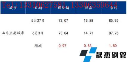 表1:山东市场建筑厚壁无缝钢管社会库存变化情况
