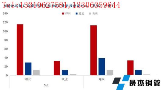1、5月份川渝地区无缝厚壁钢管厂家对四川市场实际投放148.41万吨,环比增加5.82%;对重庆市场实际投放41.25万吨,环比减少18.32%;对云南、贵州等地实际投放15.2万吨,环比增加94.87%。