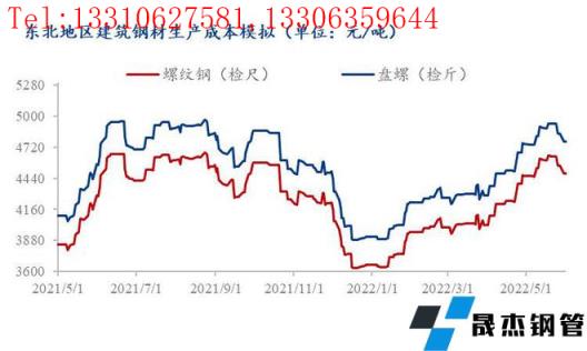 从东北地区建筑厚壁无缝钢管生产成本模型测算,2022年5月样本无缝厚壁钢管厂家主要流向市场螺纹钢平均利润31元/吨、环比收缩263元/吨、同比收缩1213元/吨,盘螺平均利润53元/吨、环比收缩236元/吨、同比收缩1355元/吨,由于去年5月份的市场行情不可复制、同比收缩的比较意义并不大,但从环比情况来看,主要流向市场平均利润收缩230元/吨以上,确实说明5月份东北地区建筑厚壁无缝钢管生产企业压力之大。