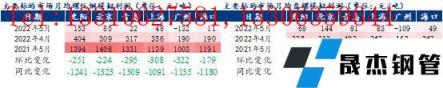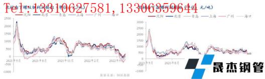 具体来看,2022年6月东北建筑厚壁无缝钢管模拟月均利润中广州螺纹钢利润环比减少322元/吨、出现了132元/吨的亏损,盘螺利润环比减少180元/吨、出现了180元/吨的亏损,海口方向螺纹钢、盘螺利润也仅为11元/吨、49元/吨,加上4月份广州、海口也处于垫底状态,说明当前华南市场依旧不是东北资源的最佳流向,而华北、华东5月份疫情分控相对较严格,资源流动受限较多,利润模型上虽超了华南,但无缝厚壁钢管厂家实际获取利润或相对有限。