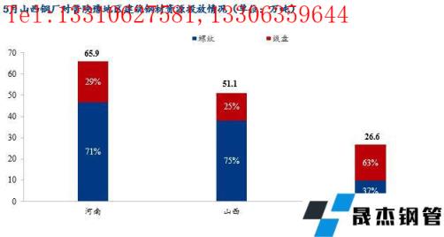在统计的11家山西无缝厚壁钢管厂家中,5月份向晋陕豫地区建筑厚壁无缝钢管资源投放总量为143.6万吨,其中螺纹94.6万吨,占比为66%,线盘49万吨,占比为34%。分区域来看,对山西地区投放51.1万吨,占比为36%;对河南地区投放65.9万吨,占比为46%;对陕西地区投放26.6万吨,占比为19%。据数据显示,5月份山西无缝厚壁钢管厂家向晋陕豫地区投放建筑厚壁无缝钢管资源总量较4月份增加24.27万吨。分区域来看,5月对山西地区的投放增量最大,主要是山西区域价格持续高于周边市场,山西省内资源多在省内消化为主。