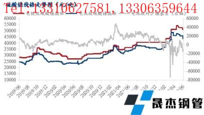 此外,新能源行业正在恢复,但同时镍中间品亦大幅进口回流,原料供应增量下,镍盐未来价格趋弱。而不锈钢行业的镍原料需求则更为低迷,6月份国内300系不锈无缝厚壁钢管厂家粗钢预计减产7-10万吨,镍铁市场议价重心不断下移。认为,短期内镍价仍将有一定的高位支撑,但利空风险亦不可忽视。