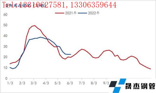 5月中下旬以来,贵州地区进入雨季,强降水天气频发,平均降水量较常年同期偏多18.2%,江河来水量较多年平均偏多25%。雨季来临,下游施工受限,运输受阻,贵阳主流库房开单量下滑明显,5月份贵阳市场主流库房日均开单量6680吨,较4月份日均开单量减少967吨,降幅达12.65%,叠加高考停工影响,今日贵阳主流库房开单量仅4500吨。较2021年5月份日均开单量减少4546吨,降幅达40.49%,仅达去年六成。雨季需求受限,贵阳市场去库速度受到影响,截至6月5日,贵阳主流库房建筑厚壁无缝钢管库存22.6万吨,较上周减少0.37万吨,降幅1.61%,较去年同期高出2.86万吨,增幅达14.48%。综合来看,雨季来临,贵阳市场建筑厚壁无缝钢管需求明显下滑,去库速度放缓。