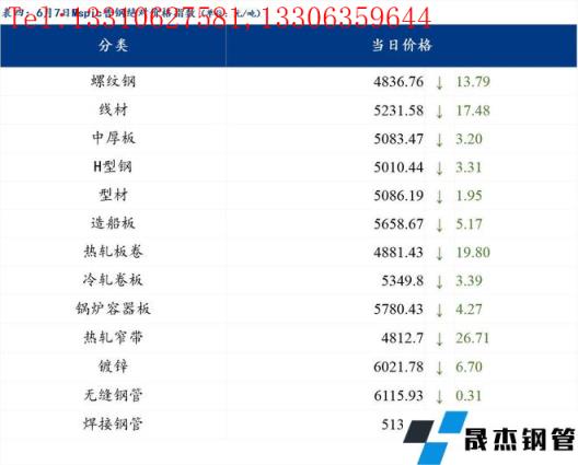 6月7日普钢绝对价格指数变化:综合指数5067.23,下跌13.43;螺纹钢指数4836.76,下跌13.79;线材指数5231.58,下跌17.48;热轧板卷指数4881.43,下跌19.8;冷轧板卷指数5349.8,下跌3.39;中厚板指数5083.47,下跌3.2。
