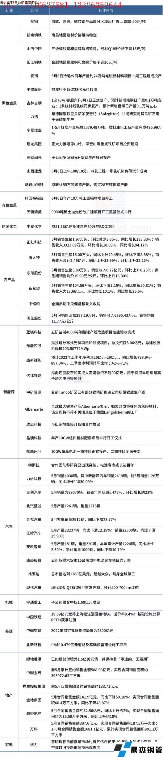 6月8日,汇总部分大宗商品相关企业要闻。