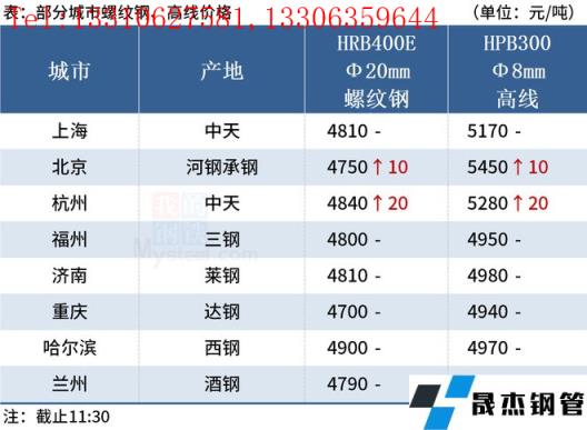 ◎杭州:8日早盘建材市场价格上涨20,螺沙4850中4810西城4790浙江华宏4720江苏镔鑫4700长达抗震4790线材中天5280亚新5090联鑫黄海盘螺5050。(单位:元/吨)