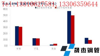 从具体投放量来看,西北地区本区域建筑厚壁无缝钢管无缝厚壁钢管厂家5月份实际投放量约在161.7万吨,相比上月增加37.5万吨。6月份西北区域内建筑厚壁无缝钢管无缝厚壁钢管厂家总计划投放量约在165.4万吨,占总产量约58.9%。其中其他省份加大了对陕西投放量,相比5月增加了约7万吨。而新疆主要是本省自己无缝厚壁钢管厂家投放,由于钢企自身减产较多,6月计划投放量约在59万吨,相比5月减少了3万吨。甘肃、宁夏以及青海6月计划投放量与上月相比无太大变化。