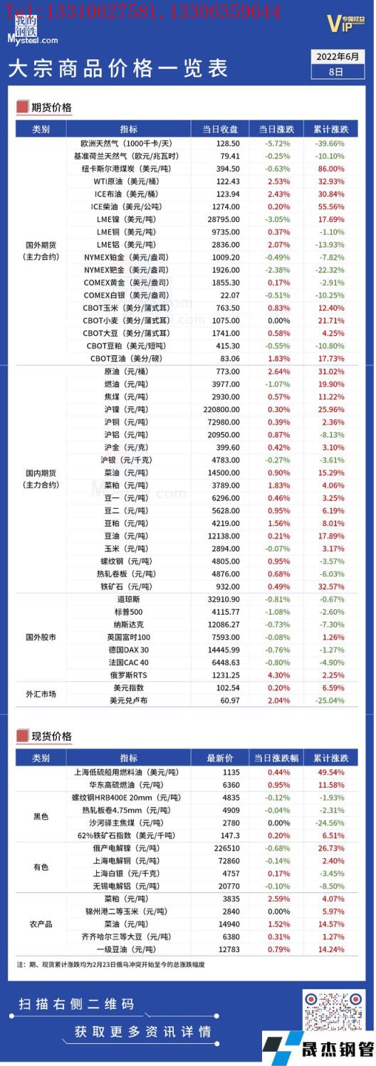 近期,受国际局势影响,全球金融及大宗商品市场出现较大波动。6月8日,国际油价大涨,天然气价格回落。