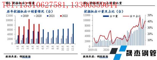 1-5月,挖掘机出口销量占总销量比重为34.53%,同比增速为75.98%。若2022年挖掘机出口能维持50%的增长,则可对冲国内挖掘机销量30%的下滑,中国挖掘机销量整体降幅为15%。目前来看,我国挖掘机出口需求仍保持较高速度增长,对国内需求下滑抵消量或好于预期。