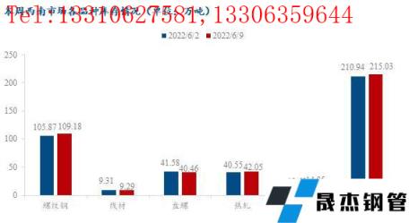据调研,截止2022年6月9日,西南市场厚壁无缝钢管累计社会库存为215.03万吨,环比增加4.09万吨,增幅1.94%。