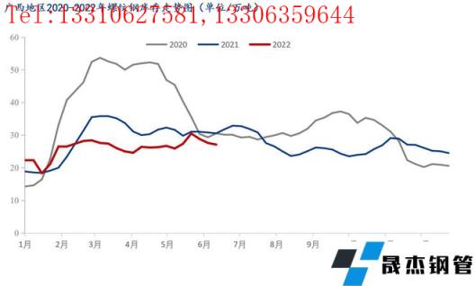 本周商家出货相对来说一般,广西建筑厚壁无缝钢管社会库存总量小幅下降。价格方面,期货盘面震荡运行,市场价格盘整居多。主要是由于本周内部分区域阴雨天气持续,需要不畅,导致代理成交相对一般,部分也有存在完成每日计划也有难度,另外本周叠加高考,尤其是市区不能工地不能开工,需求也相对减弱。从无缝厚壁钢管厂家方面来看,由于部分无缝厚壁钢管厂家利润空间较小,其中c无缝厚壁钢管厂家电炉停产预计到6月底才会复产,而其他电炉厂也多为不饱和生产,供给来看相对减少,从而市场部分资源分货量有所减少。从库存来看,南宁由于部分代理资源现在多数放在防城港仓库,导致南宁库存处于小幅下降局面,而柳州由于无缝厚壁钢管厂家分货有限,库存也小幅下降,截至目前,广西市场库存建筑厚壁无缝钢管32.2万吨,较上周相比减少0.6万吨。