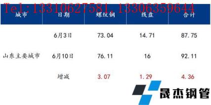 本周山东市场主要城市螺纹钢社会库存76.11万吨,较上周增加3.07万吨;盘螺社会库存16万吨,较上周增加1.29万吨;总库存92.11万吨,增加4.36万吨。