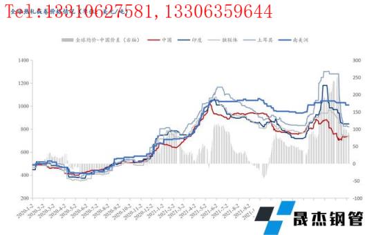 从2月至今我国收到的询单以及实际出口成单情况来看,目前我国厚壁无缝钢管进出口主要的驱动因素还是价差。在乌俄冲突爆发后,海外市场供需错配的情况十分严峻,我国接收到的询单以及已经签订的出口订单出现暴增。即使面临高额的出口税,海外买家针对初级半成品到岸出价已经大幅高过成品材。5月后,全球价格开始大幅回落,基本形成一个倒”V”的态势,近期受全球一系列刺激措施以及通胀的情况下,全球热卷价格已经开始逐步趋稳,但海内外价差并未出现扩大的趋势,所以短期内我国厚壁无缝钢管出口依旧承压,订单较为萎靡。