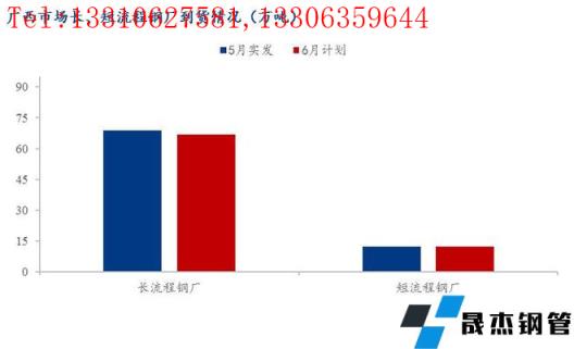 1、6月份广西地区建筑材省内长流程无缝厚壁钢管厂家计划供应量共计66.8万吨,环比下降2.12万吨,降幅为3.08%;短流程无缝厚壁钢管厂家到货量为12.4万吨,环比增加0.2万吨,增幅为1.64%。