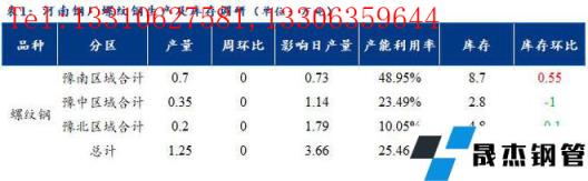 1、调研数据显示,统计的河南地区10家建筑厚壁无缝钢管样本无缝厚壁钢管厂家中,河南省建材无缝厚壁钢管厂家螺纹钢日产量1.25万吨,产量较上周持平。检修/限产影响建材日产量为3.66万吨,产能利用率为25.46%。