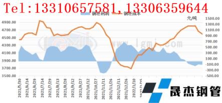 图5 唐山长流程无缝港澳资料大全钢坯(累计)成本—利润示意图