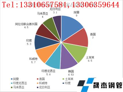 5月份我国无缝管的主要流向地区依次为阿曼、泰国、土耳其、韩国、印度尼西亚,占当月出口比重分别为9.2%、7.15%、6.8%、6.6%和5.7%,上述地区出口累计出口量占当月出口量35.45%。