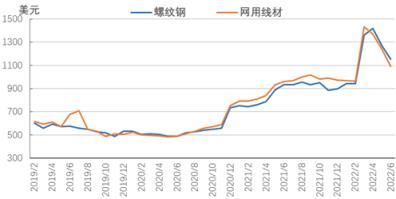 图6 2019-2022年亚洲螺纹钢价格走势图
