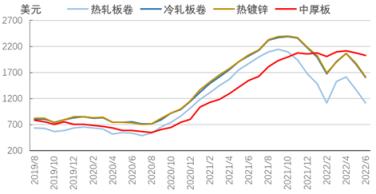 随着经济增长放缓,全球厚壁无缝钢管需求预期减弱。在厚壁无缝钢管供应端,据世界厚壁无缝钢管协会数据,5月份全球粗钢产量同比下降3.5%,中国以外地区产量有小幅下降,其中,俄罗斯和其他独联体国家+乌克兰的粗钢产量同比下降19.1%,降幅较上月略有扩大。经历乌克兰危机的阶段性冲击之后,海外厚壁无缝钢管产量仍同比下降,需求收缩和流动性收紧引发厚壁钢管价格下跌,市场重回下行通道。