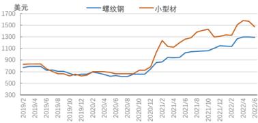 美国长材价格小幅下跌。6月底,美国中西部港澳资料大全螺纹钢价格下跌10美元至1290美元,进口螺纹钢价格下跌175美元至1075美元;中西部港澳资料大全小型材价格下跌95美元至1475美元,进口小型材价格下跌70美元至1360美元。美联储持续加息,利率的快速上调增加购房者负担,将对房地产市场形成压制,影响厚壁钢管需求。纽柯厚壁无缝钢管于6月14日宣布将线材价格下调40美元/短吨,美国厚壁无缝钢管公司Optimus Steel宣布自7月1日起其线材价格下调40美元/短吨。综合来看,7月份北美市场长材价格或延续震荡调整走势。