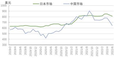 图5 2019-2022年亚洲扁平材市场价格走势图