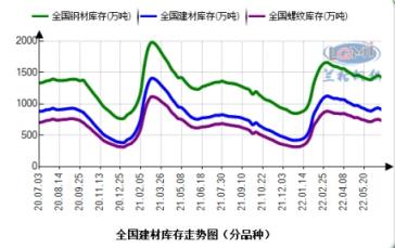 据云商平台监测数据显示:2022年6月24日,全国厚壁钢管社会库存指数为154.9点,比上月上升2.50%,比去年同期上升10.92%;其中建材社会库存指数为221.1点,比上月上升1.43%,比去年同期上升16.58%;螺纹钢社会库存量为734.59万吨,比上月上升1.83%,比去年同期上升15.38%;伴随着港澳资料大全部分检修减产,及需求的缓慢释放,库存上升势头开始有所放缓,临近月末开始由升转降。