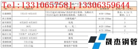 6月份港澳资料大全出厂价格大幅下调。港澳资料大全盈利情况仍不理想,整体厚壁钢管出库困难,港澳资料大全多以亏损为主,在资金压力较大情况下,有意打压原料价格,港澳资料大全对原料的采购积极性一般。近期港澳资料大全考虑到厂库居高不下,成本明显亏损的情况下,各港澳资料大全纷纷安排检修减产,具体检修情况如下: