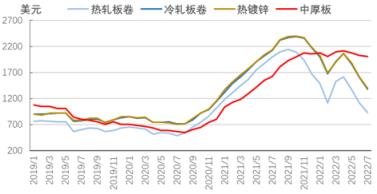 美国经济衰退风险上升,制造业增速连续回落,加息提高企业和居民的融资成本,扁平材供需或将走弱,8月份北美市场扁平材价格可能保持弱势调整的态势。