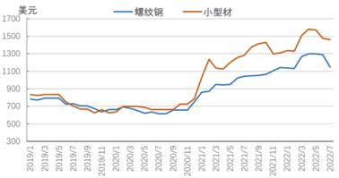 图6 2019-2022年亚洲螺纹钢价格走势图