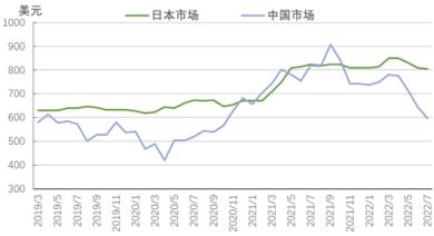 图5 2019-2022年亚洲扁平材市场价格走势图