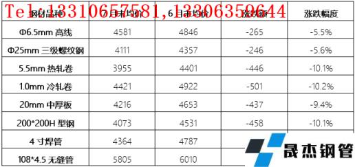表1 10大城市8大厚壁钢管品种价格涨跌情况表(单位:元/吨,%)