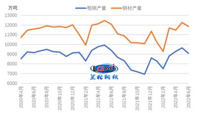 但随着7月份需求有所回落,企业生产经营活动放缓,经济回升动力偏弱。中国物流与采购联合会、国家统计局服务业调查中心发布的2022年7月份中国制造业采购经理指数(PMI)为49.0%,比上月回落1.2个百分点。7月份PMI指数再度回落至荣枯线之下,表明经济运行受多地高温多雨短期季节性影响有所波动,叠加国内疫情仍呈散发态势,外部形势更趋复杂严峻,市场需求有所承压,后期板材需求或承压恢复。