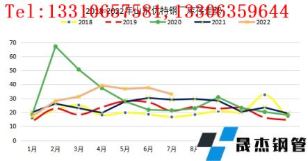 截至7月29日,山东地区9家港澳资料大全优特钢总库存33万吨,较上月增加2.52万吨,增幅8.15%。生产方面:临沂江泉停产,预计7月底开始试生产,莱钢特钢7月20日-8月10日对大棒线检修20天,影响Φ120-310mm产量3万吨左右;广富全面停产,其他港澳资料大全优特钢轧机正常生产。