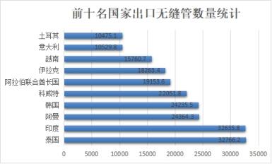 7月份我国无缝管的主要流向地区依次为泰国、印度、阿曼、韩国、科威特,占当月出口比重分别为7.6%、7.5%、5.65%,5.6%和5.1%,上述地区出口累计出口量占当月出口量31.5%。