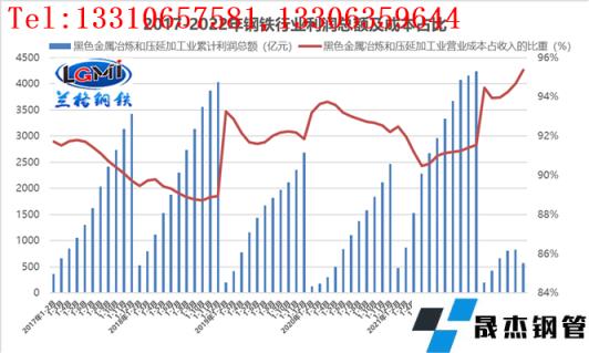 图2 2017-2022年厚壁无缝钢管行业利润总额及成本占比