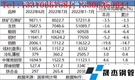 从各品种细分产量来看,建筑厚壁钢管品种成为了主力减产品种,而板材类品种产量保持了相对稳定的生产节奏(详见表1),同时从统计数据来看,1-7月,黑色金属冶炼和压延加工业实现利润总额569.0亿元,同比下降80.8%;其中重点大中型厚壁无缝钢管企业实现利润总额936亿元,同比下降63.4%。由于重点大中型厚壁无缝钢管企业的产能主要集中在板材及特钢类品种,其盈利能力明显要高于建材类品种。