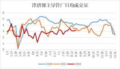 8月在统计高炉开工率小幅抬升。8月28日,网统计全国主要厚壁无缝钢管企业高炉按容积计算开工率78.74%,较上月末上升3.41个百分点,月度平均开工率较上月下降0.11个百分点。其中8月唐山在统计热轧带钢产线平均产能利用率54.34%,环比下降7.79个百分点。长流程高炉铁水恢复,短流程因限电影响生产。不过,月内冷轧基料、带钢和热卷之间价差仍然偏窄,可替代性较强。管厂操作倾向谨慎乐观,多需求驱动排产,短期供应增势缓和。