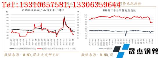 而对于消费品和设备折旧废钢的产生,往往都伴随着产品的以旧换新,消费升级以及产品的更新迭代等,这意味着需要有更多的销量才能带来更多的消费及设备废钢折旧。今年以来国内汽车销售表现平平,1-7月份国内汽车销量累计同比仍有2%的降幅。家电销量表现也有所分化,1-7月份大家电销量累计同比增长5.4%,但厨房电器销量累计同比下滑6.5%,生活电器销量累计同比下滑11.2%,整体家电销售同比增速下滑接近5%,处于近年来的低位。同期,国内的机械用内燃机销量累计同比下滑12.3%,机械主要企业销量累计同比也有明显下滑,且今年企业的新订单与消费者的消费意愿都处于低位。